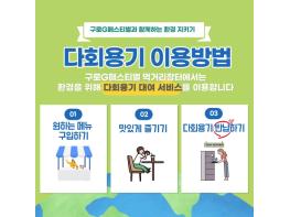 구로구는 이번 행사에 다회용기 사용을 처음 도입한다. 이용객은 다회용기에 담긴 음식을 즐기고 사용한 용기를 전용 반납부스에 직접 반납하면 된다. 반납된 용기는 전문세척업체에서 세척한 후 검수 단계를 거쳐 재사용된다.