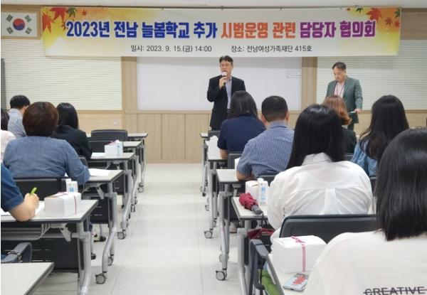 전라남도교육청이 9월 15일 전라남도여성가족재단 415강의실에서 하반기 추가 늘봄학교 시범운영 7개 학교와 해당 교육지원청을 대상으로 협의회를 갖고 2024년 확대운영 기반조성을 위한 방안을 모색했다.