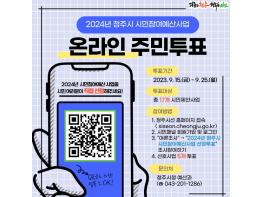 청주시는 2024년 예산안에 담을 시민참여예산 제안사업의 우선순위 선정을 위한 온라인 투표를 실시한다고 19일 밝혔다.