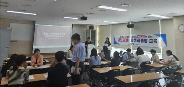 토론학습방은 구청 및 동 행정복지센터 간 상호학습을 통해 주요 복지사업을 숙지하고, 업무추진 중 직면하게 되는 다양한 사례 공유 등 업무역량을 강화해 민원인들에게 전문적인 복지서비스를 제공하고자 마련된 시책이다.