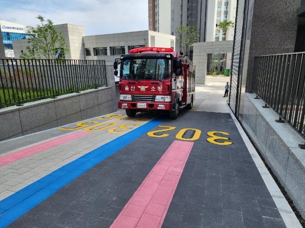 울산지역 아파트에도 화재?구조?구급 발생 시 골든타임 확보를 위한 소방차량 출동유도선이 설치된다.