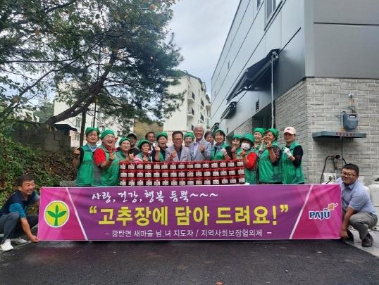 파주시 광탄면 새마을부녀회는 지난 15일 추석 명절을 앞두고 ‘사랑·건강·행복 듬뿍, 고추장 담그기’ 행사를 진행했다.