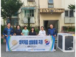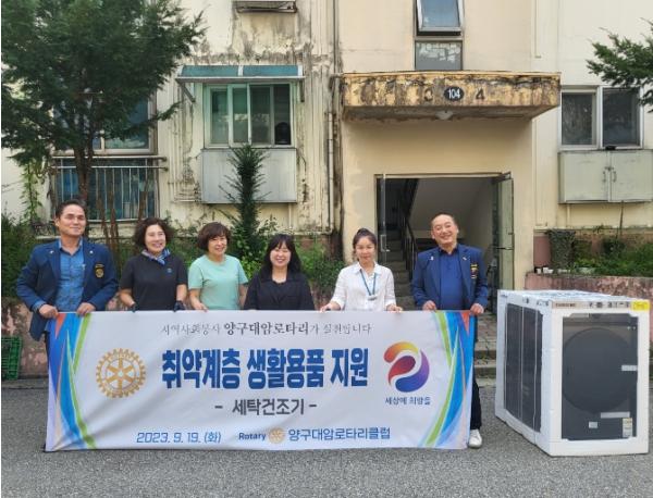 이번에 전달된 물품은 국제로타리 3730지구 양구대암로타리를 통해 받은 물품으로, 생활공간이 협소하여 세탁 후 건조가 어려운 한부모가정(2남 4녀)을 위해 양구대암로타리 회원들이 정성을 모아 마련한 것이다.
