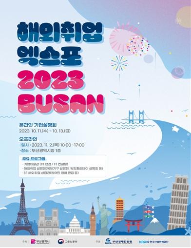 '해외취업 엑스포 2023 부산(BUSAN)'은 오는 11월 2일 오전 10시 시청 1층에서 개최되며, 해외 우수기업과의 만남의 장을 제공해 지역 청년들의 해외 취업을 돕기 위해 마련됐다.