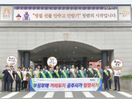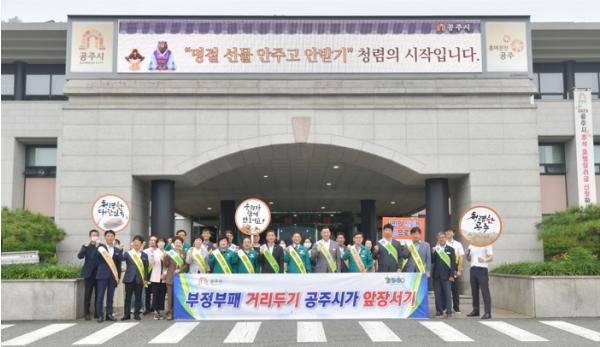 공주시가 20일 시청 광장에서 추석 명절을 앞두고 ‘반부패·청렴 실천 캠페인’을 펼쳤다.
