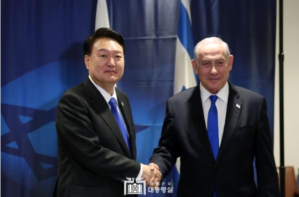 제78차 유엔총회 고위급 회기 참석을 위해 미국 뉴욕을 방문 중인 윤석열 대통령은 9월 20일 오후 '벤야민 네탄야후(Benjamin Netanyahu)' 이스라엘 총리와 취임 이후 처음으로 정상회담을 가졌다.