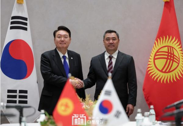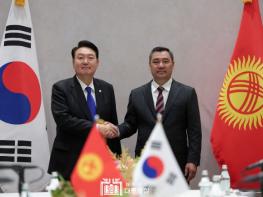 제78차 유엔총회 고위급 회기 참석을 위해 미국 뉴욕을 방문 중인 윤석열 대통령은 9월 20일 오전 '사디르 자파로프(Sadyr Japarov)' 키르기스스탄 대통령과 취임 이후 처음으로 정상회담을 가졌다.