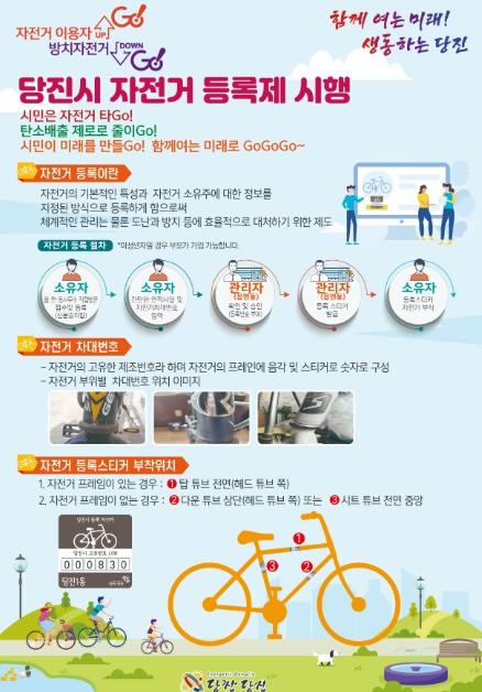 또한 당진시는 전국 최초 무단 방치 자전거 식별 스티커 부착을 시행한다. 자전거 보관대 이용을 방해하는 무단 방치 자전거를 적기에 수거하여 자전거 이용자의 편의를 증진할 것으로 기대한다. 무단 방치 자전거 식별 스티커는 거치대 관리자가 읍ㆍ면ㆍ동 행정복지센터에 직접 방문하여 교육 수료 후 수령 가능하다.