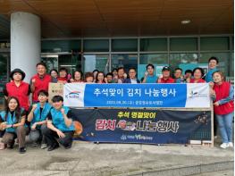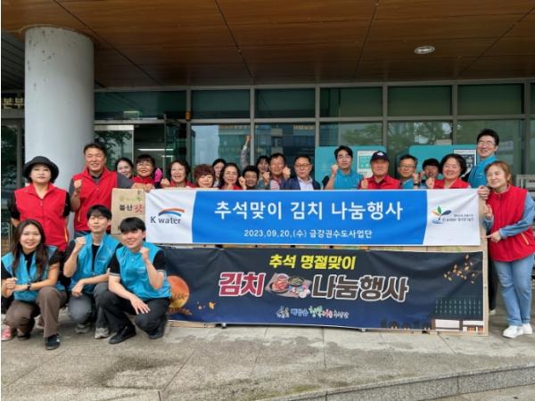 아산시 배방읍 행복키움추진단이 지난 20일, 한국수자원공사(이하 K-water) 금강권수도사업단과 추석맞이 김치 나눔 행사를 전개했다.