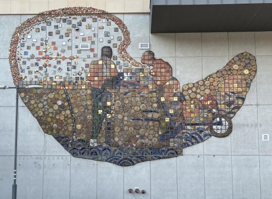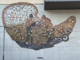 프랑스 화가 밀레의 대표작 ‘만종’을 오마주하여 가로 11.5m, 세로 8m 크기로 조성한 입체벽화는 약 2천여 개의 도자기 타일을 하나하나 이어 붙여 만들어졌다.