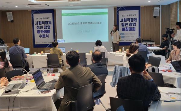 사회적경제 청년 창업 아이디어 경진대회는 지난 8월부터 9월까지 운영된 전남 사회적경제 청년 창업 아카데미 수료생 15팀을 대상으로 열정적이고 톡톡 튀는 아이디어를 발굴하기 위해 지난 20일 목포시 소셜캠퍼스 온 전남에서 진행됐다.