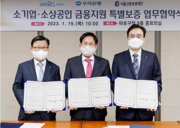 지난 1월 마포구는 관내 소기업과 소상공인에게 4년간 총 1천억 원의 자금을 지원하고자 우리은행, 신용보증재단과 3자 업무 협약을 체결하고, 매년 우리은행과 각각 10억 원씩 특별출연해 연간 출연금의 12.5배인 250억 원을 지원하기로 했다.