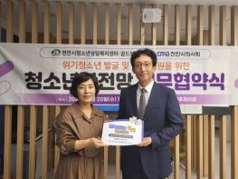 천안시청소년상담복지센터는 지난 20일 천안시의사회와 천안시 청소년들의 건강한 성장지원을 위한 업무협약을 체결했다고 밝혔다.