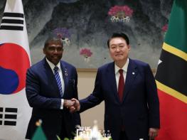 제78차 유엔총회 고위급 회기 참석을 위해 뉴욕을 방문 중인 윤석열 대통령은 9월 21일 오전 '테렌스 드류(Terrance Drew)' 세인트키츠네비스 총리와 취임 이후 처음으로 정상회담을 가졌다.