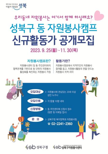 성북구가 오는 11월 30일까지 동 자원봉사캠프 신규활동가를 공개모집 한다.