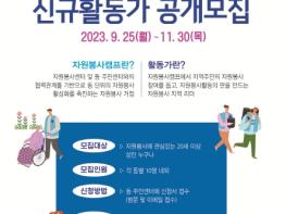모집 대상은 자원봉사에 관심이 있는 20세 이상 성인이면 누구나 신청 가능하며 신청은 각 동 주민센터에 방문 및 전자우편으로 가능하다.