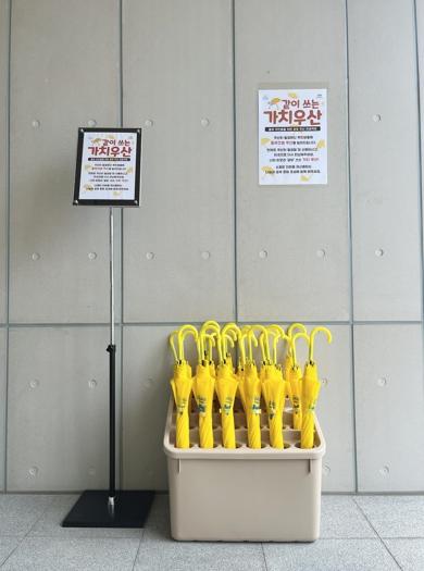 김해시 동부건강생활지원센터는 주민들에게 우산을 무료로 대여하는 ‘같이 쓰는 가치 우산’ 사업을 실시 중이다.