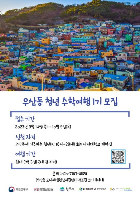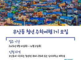 우산동 도시재생현장지원센터는 ‘2023년 우산동 도시재생, 우산동 청년 수학여행 1기’를 모집한다.