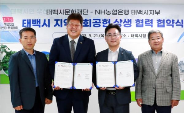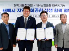 태백시는 지난 21일 태백시문화재단과 NH농협은행 태백시지부가 태백시 지역 사회공헌 상생 협력 협약식을 개최했다고 전했다.