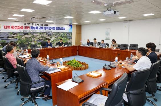영주시의회 의원연구단체, 지역 활성화를 위한 특성화 교육 정책 연구회(유충상 대표의원(국민의힘, 나선거구, 하망동, 영주1·2동)·이재원 의원·우충무 의원·이상근 의원·김병창 의원)는 지난 9월 21일, 영주시의회 소회의실에서 ‘영주시의회 지역 활성화를 위한 특성화 교육 정책 연구회 중간보고회’를 개최했다.