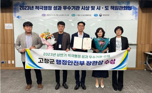 고창군이 2023년 상반기 지방자치단체 적극행정 성과점검 결과 ‘우수기관’으로 선정되는 쾌거를 거뒀다.