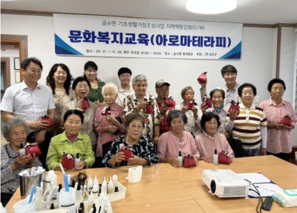 이번 노래 교실은 매주 화요일 2시 금수면사무소에서 진행되며, 아울러 금수면 복지회관에서는 매주 목요일 아로마향기를 이용한 자연치료요법인 아로마테라피 교육이 진행된다.