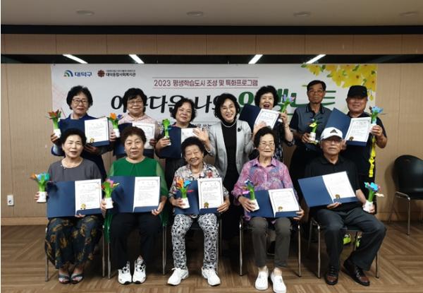 대전 대덕구는 대덕구시니어클럽 등 6개 기관 60세 이상 어르신 76명 대상으로 진행한 치매 예방 프로그램 ‘아름다운 나의 인생노트’를 성황리에 마쳤다고 밝혔다.