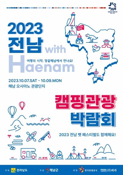전라남도와 해남군은 ‘2023년 전남 캠핑관광 박람회’를 오는 10월 7일부터 3일간 해남군 오시아노 오토캠핑장에서 개최한다고 밝혔다.