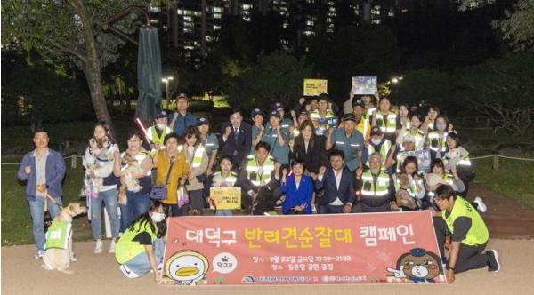 대전 대덕구가 최근 발생한 흉기난동 등 이상동기 범죄로 인한 주민들의 불안감 해소를 위해 대덕구 반려견 순찰대 ‘덕구즈’와 대덕구, 대덕경찰서 합동으로 순찰 활동 및 펫티켓 준수 캠페인을 진행했다.