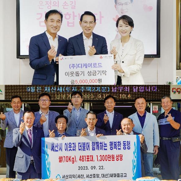 시에 따르면 22일 ㈜디케이로드와 서산지역 3개 새마을금고에서 성금과 쌀을 기탁했다고 밝혔다.