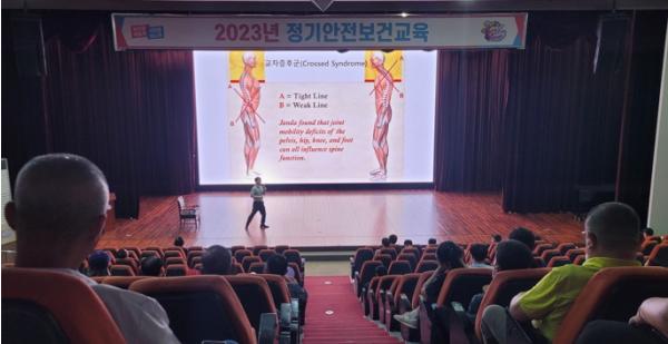 이틀간 진행된 이번 교육은 △근골격계질환 예방 및 관리 △올바른 중량물 취급법 △스트레칭 실습 △휴먼 에러 이해 및 중대 재해 예방 방법 등으로 진행됐다.