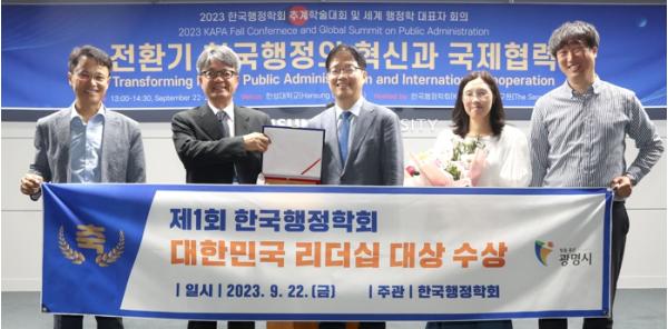 한국행정학회는 광명시의 ▲비전·공공가치 창출 ▲전략 수립·실행 ▲현안 과제 해결 ▲일하고 싶은 조직문화 및 협업문화 활성화 노력 등을 평가한 결과, 박 시장이 소통과 공감을 통해 혁신적인 성과를 거둬 ‘공감 리더십 부문’ 대상 수상자로 선정했다고 밝혔다.