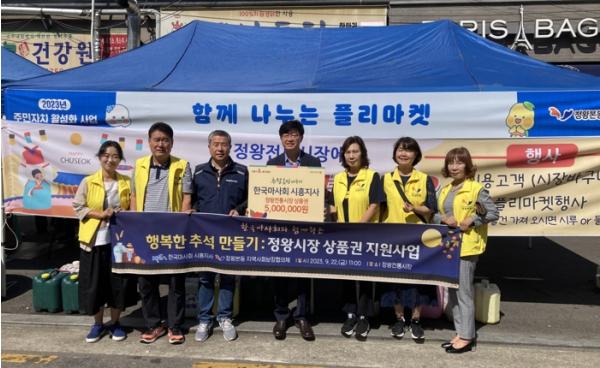 정왕본동 지역사회보장협의체는 한국마사회 시흥지사와 함께하는 ‘행복한 추석 만들기-정왕시장상품권 지원사업’을 추진하고, 지난 22일 정왕전통시장에서 상품권 전달식을 진행했다.