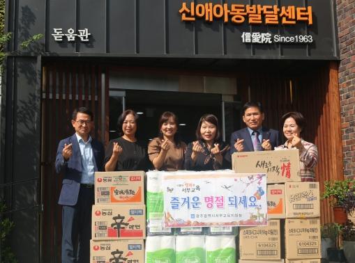 광주서부교육지원청이 추석을 앞둔 지난 22일 아동양육시설 2곳을 방문하고 공동생활가정(그룹홈)을 초청해 위문품을 전달했다.