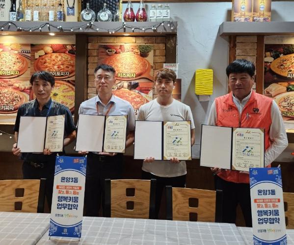 아산시 온양3동 행복키움추진단이 지난 22일 이석민피자 온양점과 복지 사각지대 대상자의 복지향상을 위한 정기후원 협약을 체결했다.