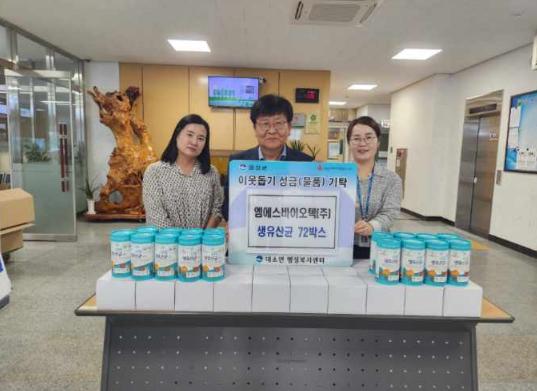 엠에스바이오텍(주)에서 취약계층에 전달해 달라며, 대소면 행정복지센터로 72명분(72박스)의 장건강과 항산화기능에 도움이 되는 유산균(판매가 130만원 상당) 제품을 기탁했다.