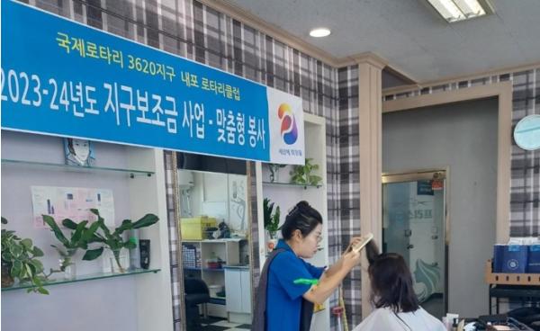 이번 봉사는 내포로타리클럽 회원들이 재능기부에 함께 참여하여 아이들의 머리를 잘라주고 감겨 주었다.