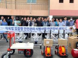 이날 배부된 농작업 장비와 안전 보조구는 약제 호스릴 분무기, 전동운반차 등 안전장비 50대와 안전보조구 150개이다.
