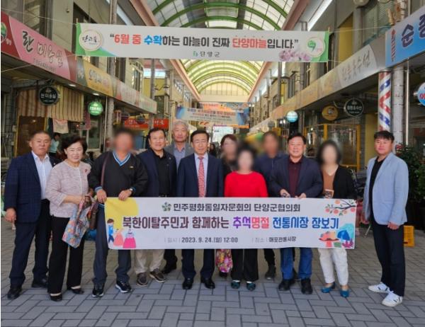 민주평화통일자문회의 단양군협의회는 지난 24일 매포전통시장에서 ‘북한이탈주민과 함께하는 전통시장 장보기 행사’를 가졌다.