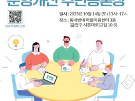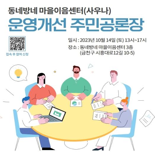 금천구는 10월 14일 13시 시흥3동 ‘동네방네 마을이음센터’ 사우나 시설 운영개선을 위해 주민공론장을 개최한다고 밝혔다.