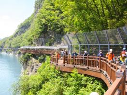 이 길의 총연장 중 800m 구간은 강과 맞닿은 20여m 암벽 위에 설치돼 강물 위에 있는 환상과 함께 걸을 때마다 짜릿한 스릴과 재미를 온몸으로 체험할 수 있다.