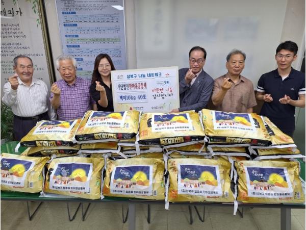 서울 성북구 정릉골사단법인 한마음공동체가 지난 20일 추석을 앞두고 정릉2동 지역의 소외 이웃을 돕기 위해 백미 40포를 정릉2동주민센터에 기탁했다.