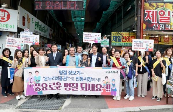 이동환 고양시장이 지난 25일 추석 명절을 앞두고 전통시장을 찾아 상인들을 격려하고 물가안정 동참과 전통시장 이용 홍보에 나섰다.