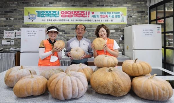 부산시 금정구 소재 식당 산성집은 금곡동 지역사회보장협의체에서추진 하고 있는 ‘기운쭉죽! 영양쭉죽!!’ 지원사업에 재료로 활용할 수 있도록 직접 농사지은 호박을 기부했다.