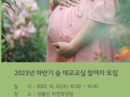 충북 괴산군보건소는 오는 10월 25일 성불산 자연휴양림에서 괴산군에 거주하는 임신부 및 관내 직장인 임신부를 대상으로 ‘숲 태교 교실’을 운영한다.