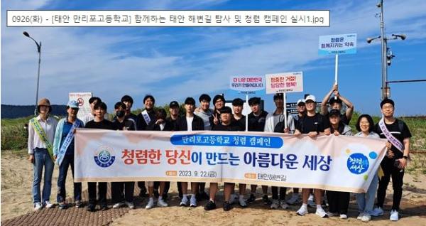충청남도 태안 만리포고등학교(교장 윤희암)는 지난 9월 22일(금), 스승과 제자 그리고 청렴지킴이가 함께하는 태안 해변길 탐사를 실시했다.