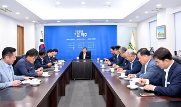 이에 파주시는 김경일 파주시장의 주재로 종합대책회의를 열었으며, 회의는 부시장 및 국장급 간부들이 참석한 가운데 진행됐다.