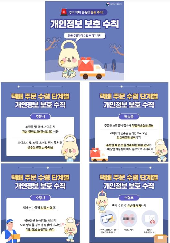 이와 함께, 개인정보위는 추석 명절을 맞아 선물 발송 등 택배 이용이 급증하는 시기에 맞춰 국민이 실천할 수 있는 택배 운송장 개인정보 보호 수칙도 함께 알렸다.