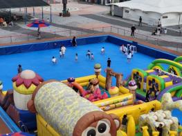 어린이 놀이시설은 야외수영장 성인풀 내에 매트를 설치해 인공암장, 미끄럼틀 등으로 구성된 초대형 에어바운스 4개소와 어린이 축구장 등으로 조성됐다. 또한 안전요원을 곳곳에 배치해 어린이들이 안전하고 즐겁게 뛰어놀 수 있도록 안전관리에 집중, 운영 중이며 누구나 무료로 입장할 수 있다.