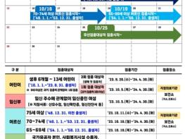 접종 대상은 65세 이상 어르신(1958. 12. 31. 이전 출생자)이며, 안전한 예방접종 시행을 위해 연령대를 구분해 실시한다. 75세 이상은 10월 11일부터, 70~74세는 10월 16일부터, 65~69세는 10월 19일부터 주소지 관계없이 전국 지정 위탁의료기관에서 무료로 접종할 수 있다.